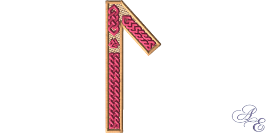 Berkana rune with knotwork. 72mm x 164mm, 2 colors, 22942 stitches