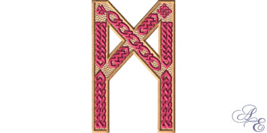 Ehwaz rune with knotwork. 103mm x 164mm, 2 colors, 28901 stitches