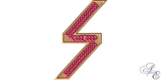 Sowulo rune with knotwork. 108mm x 164mm, 2 colors, 17906 stitches
