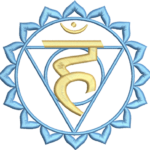 A two color symbol for Vissudha, the Throat Chakra. Also available in a larger and smaller size and single-color versions.